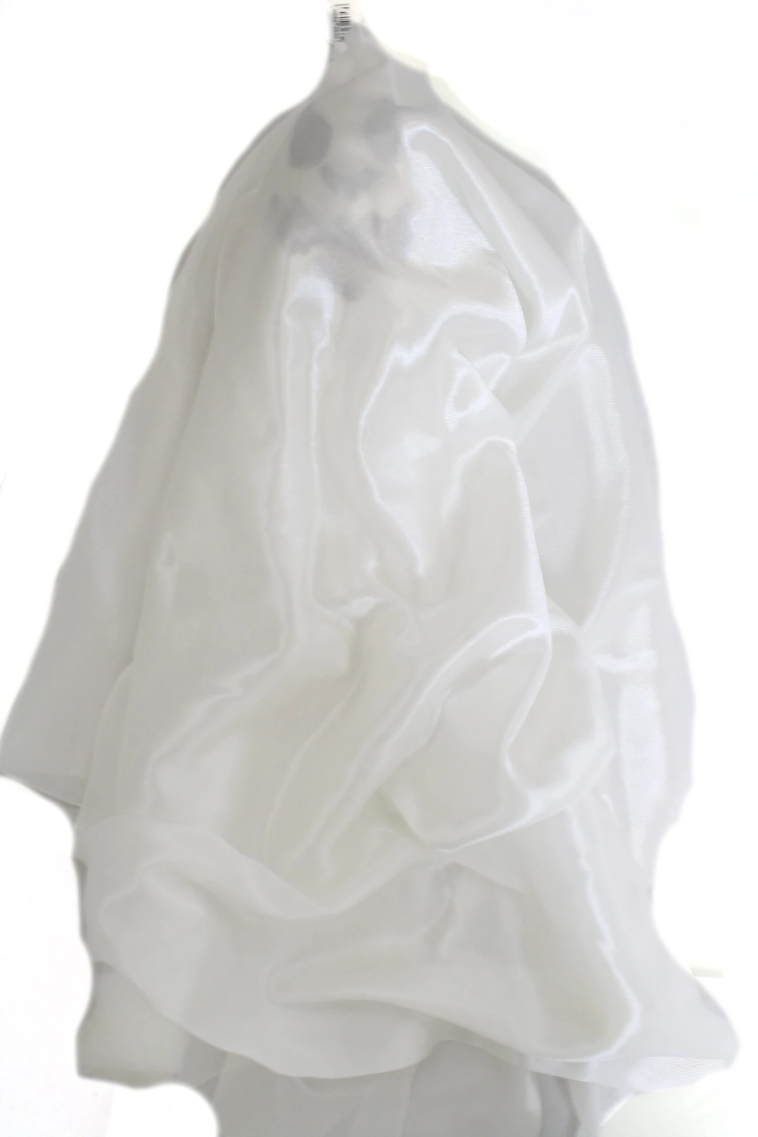 - Sheer fabric shows just a touch of his face underneath