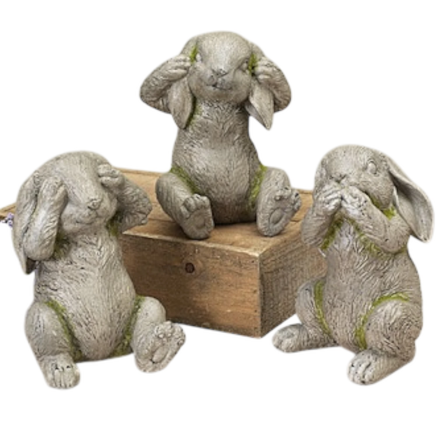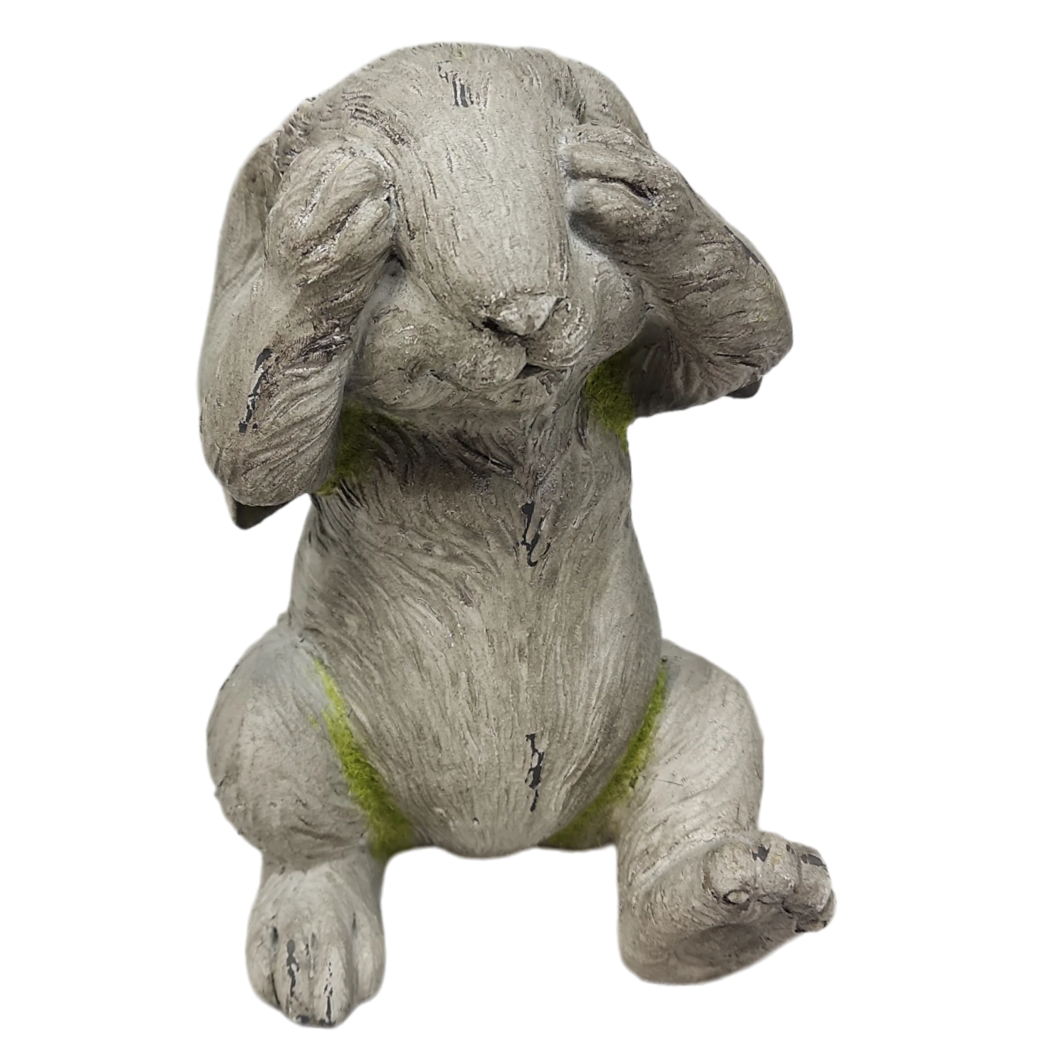Available in three designs, this bunny figurine will be a fun addition to your outdoor space. The gray finish will complement many decor styles and the accent of green adds to the appeal.