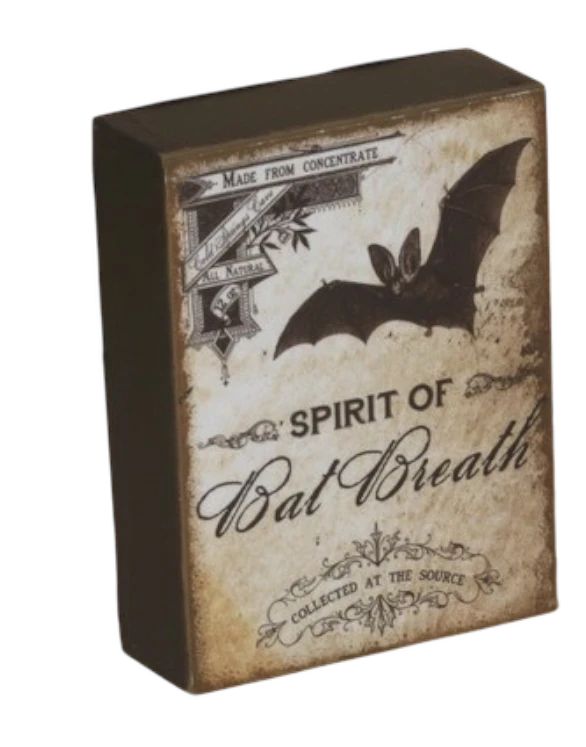 Add a touch of whimsy and spookiness to your Halloween decor with the Bewitching Potion Blocks, available individually to suit your unique style. Each block measures 6 inches by 4.5 inches and features a delightful design, bringing to life the fun and mysterious world of potions and spells. Crafted from wood with a felt backing, these charming decorations showcase playful potion labels like “Spirit of Bat Breath,” “Essence of Black Cat Hisses,” and “Spider Venom,” providing an enchanting accent that will capture attention and spark imagination.