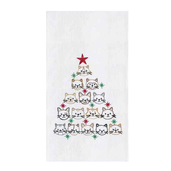Let your love for cats shine this Christmas with the Cat Face Christmas Tree Embroidered Flour Sack Kitchen Towel, adding delight and whimsy to your holiday celebrations!