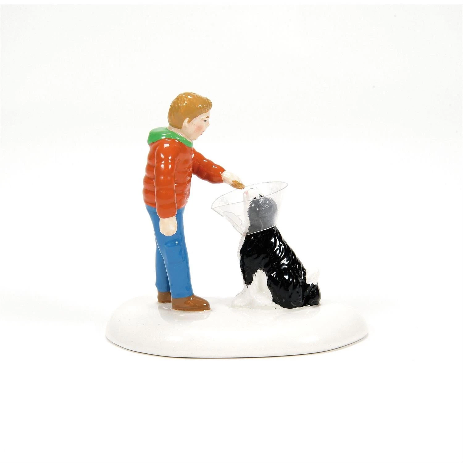 A young boy convincing his puppy that they can, indeed, wait 2 more days to get that cone removed. It will be the best Christmas ever!