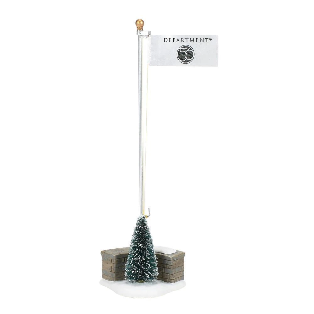 Now everyone can have an exact replica of the Department 56 corporate flag to fly over their own Village display. The base is made of porcelain with an attached sisal tree and is hand painted.