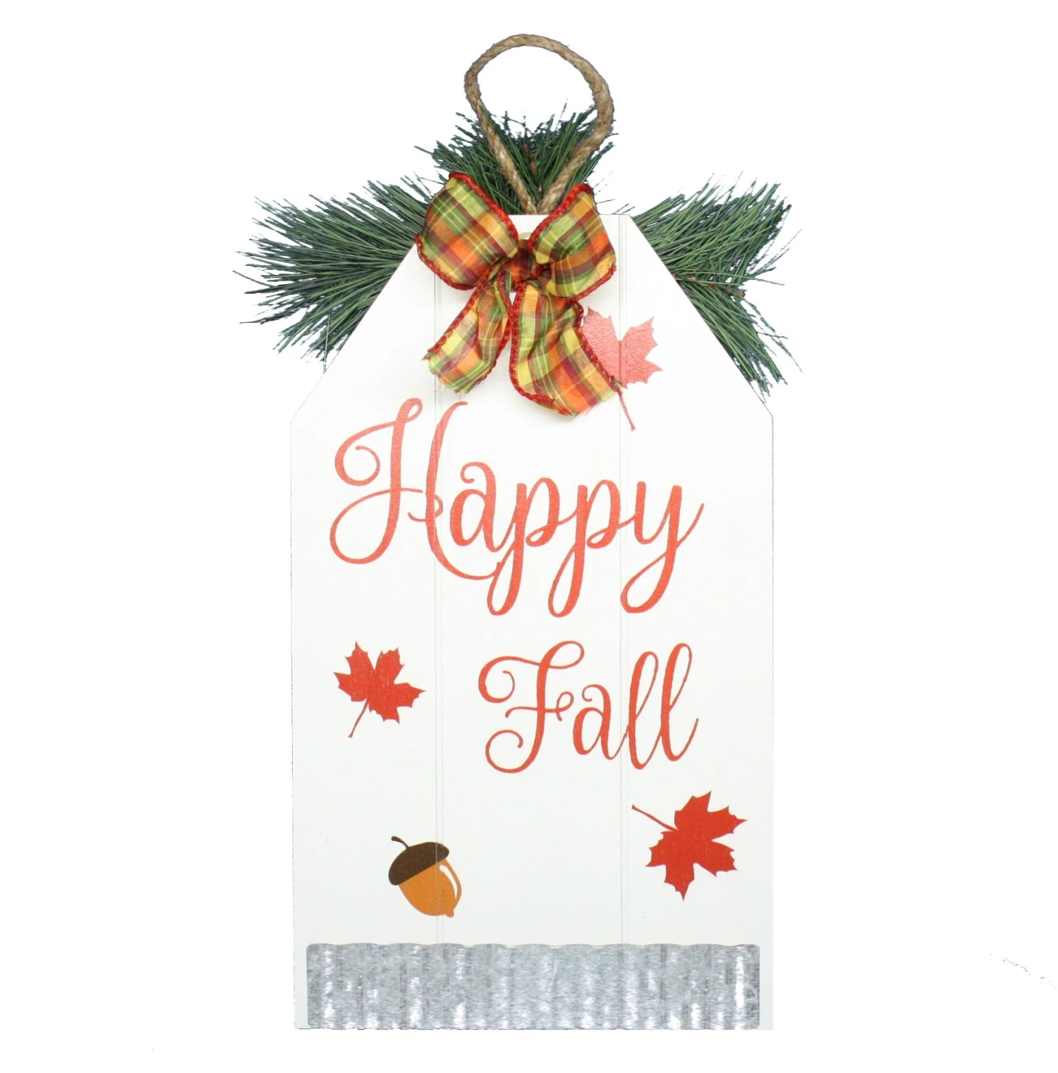 - Side #1 has “Happy Fall” with acorns and leaves, accented with a Fabric Autumn Plaid bow.