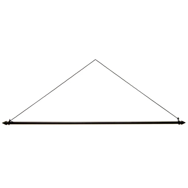 This metal dowel is 31.5″ W, designed to hold a standard house flag of 24″ -29″ in width on a wall using attached cord. A hook or nail is required to attach the dowel to the wall.