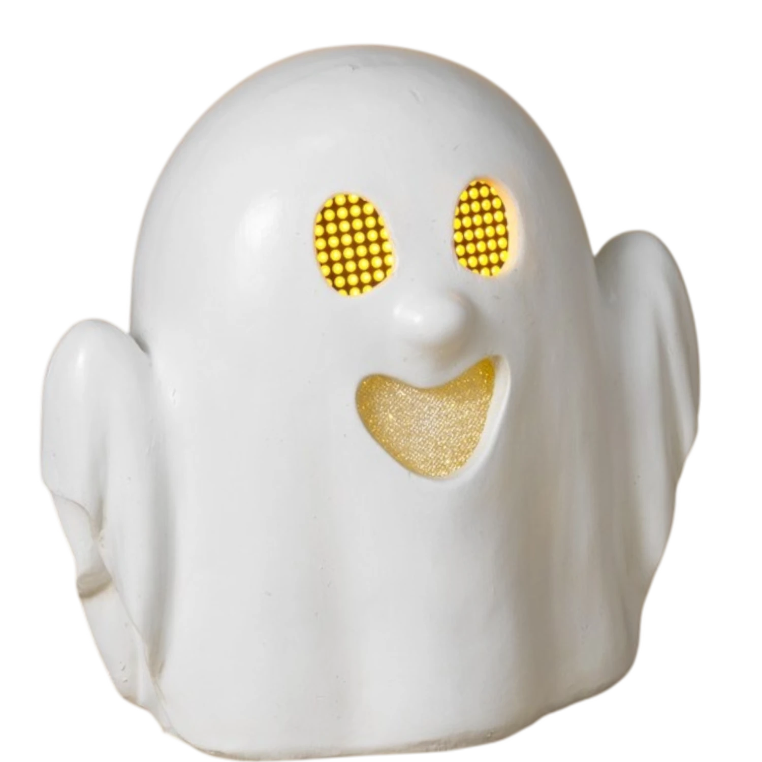 Get ready to embrace the spirit of Halloween with our Spooky Ghost with Running Eyes! Measuring 8.5 inches by 8.5 inches and crafted from durable resin, this charming ghost is designed to spread festive cheer and a hint of spookiness throughout your home. Featuring a friendly face with delightful running eyes that light up in a playful digital sequence, this ghost is sure to capture the attention of both young and old.