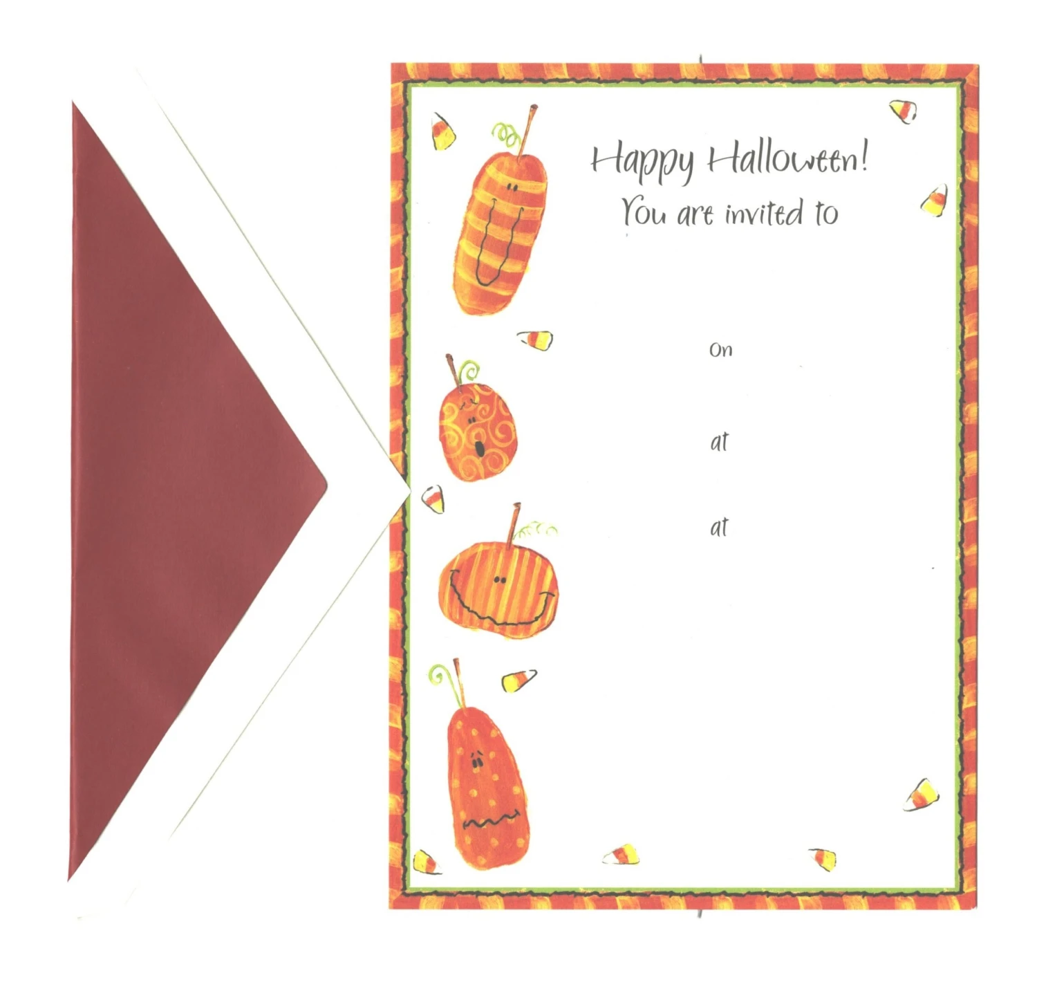 It’s time to get ready for Halloween! These candy corn and pumpkin themed invitations are the perfect way to invite your friends and family to your spooky celebration. With 10 – 5″ x 7″ cards and matching envelopes, you can make sure everyone knows about the fun!