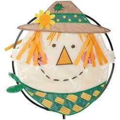 This item is a wonderfully creative, very colorful and welcoming ” hoopster” (round flag) addition for your home decor needs for this fall with this adorable scarecrow
