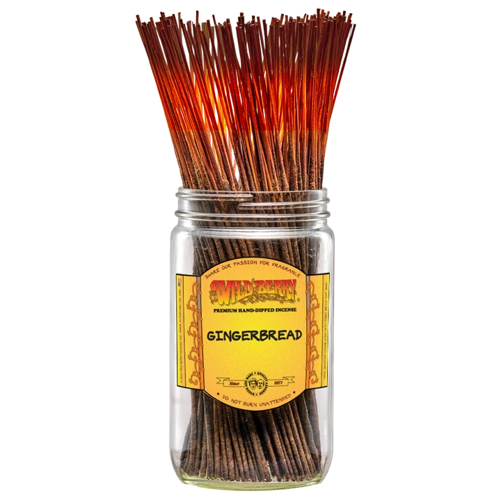 10 hand-dipped Gingerbread incense sticks. A warm buttery gingerbread fragrance with notes of orange zest, molasses, clove spice, nutmeg and sweet vanilla.