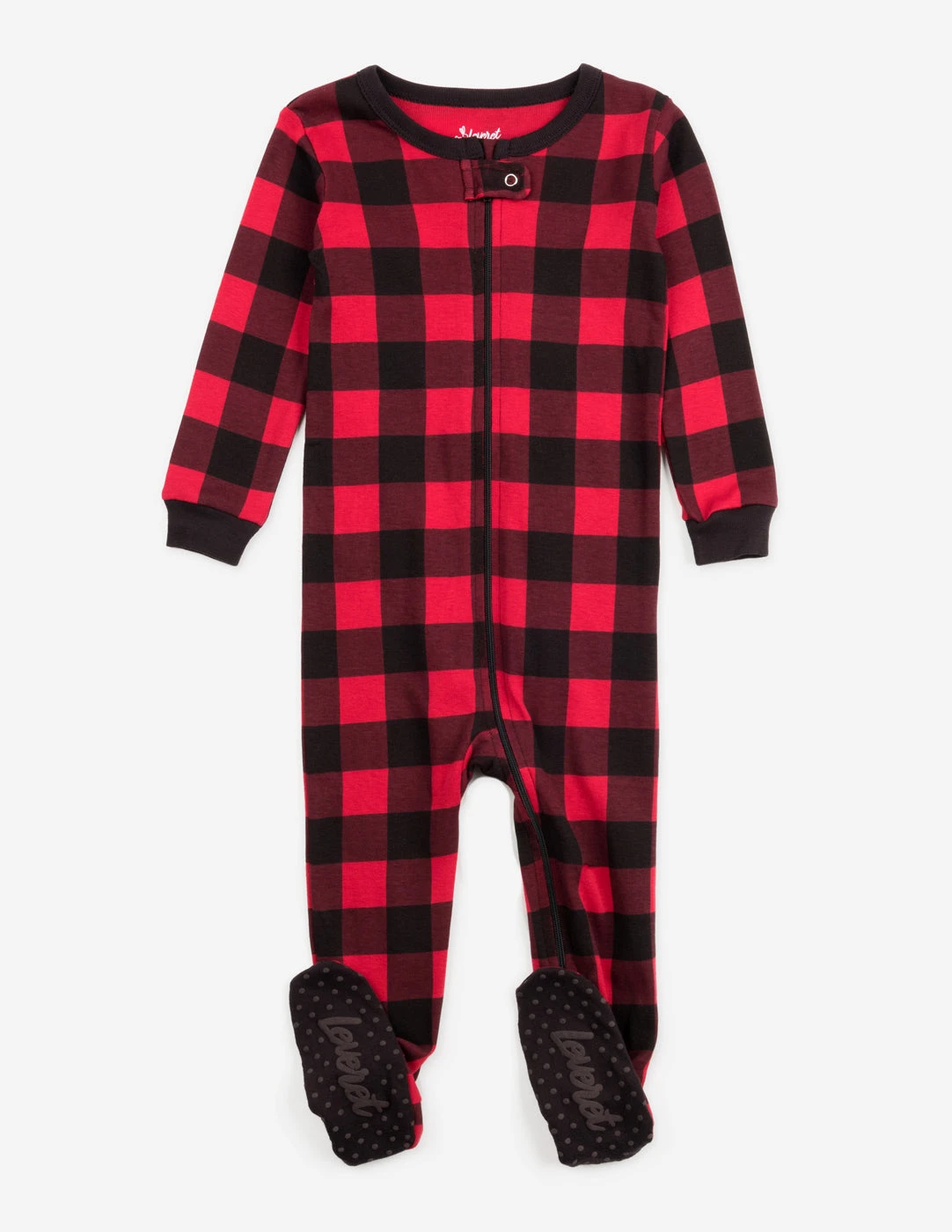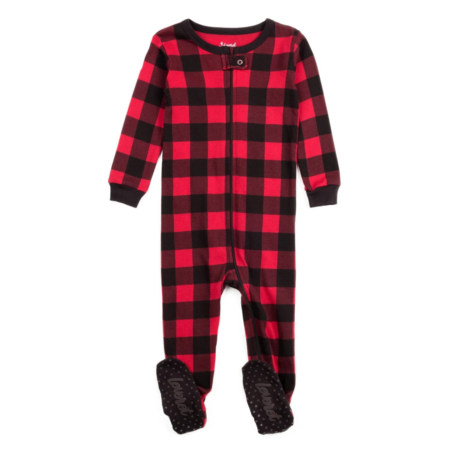Kids Footed Cotton Pajama Black And Red Plaid –