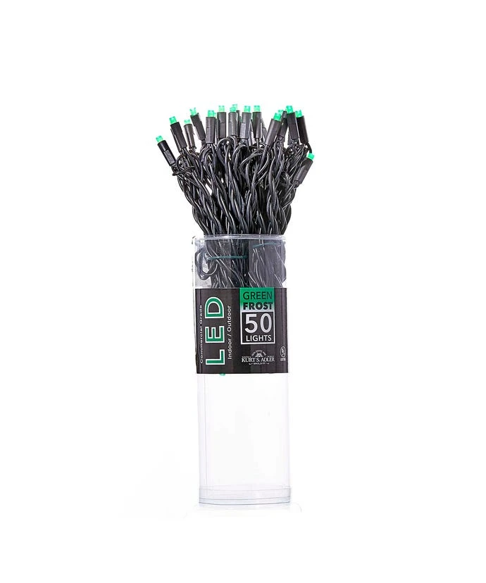 This Kurt Adler UL 50-Light 5mm Green Frost LED Black Wire Light Set is sure to be a unique focal point in your Halloween decor. Each light set is packaged in an acetate tube. This light set offers a wide variety of commercial and residential uses. The soft frosted glow is sure to be a unique focal point in your Halloween decor.