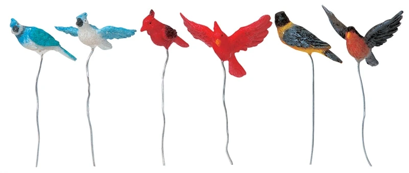 6 various birds on small wire stakes to add some Nature to your village scene.
