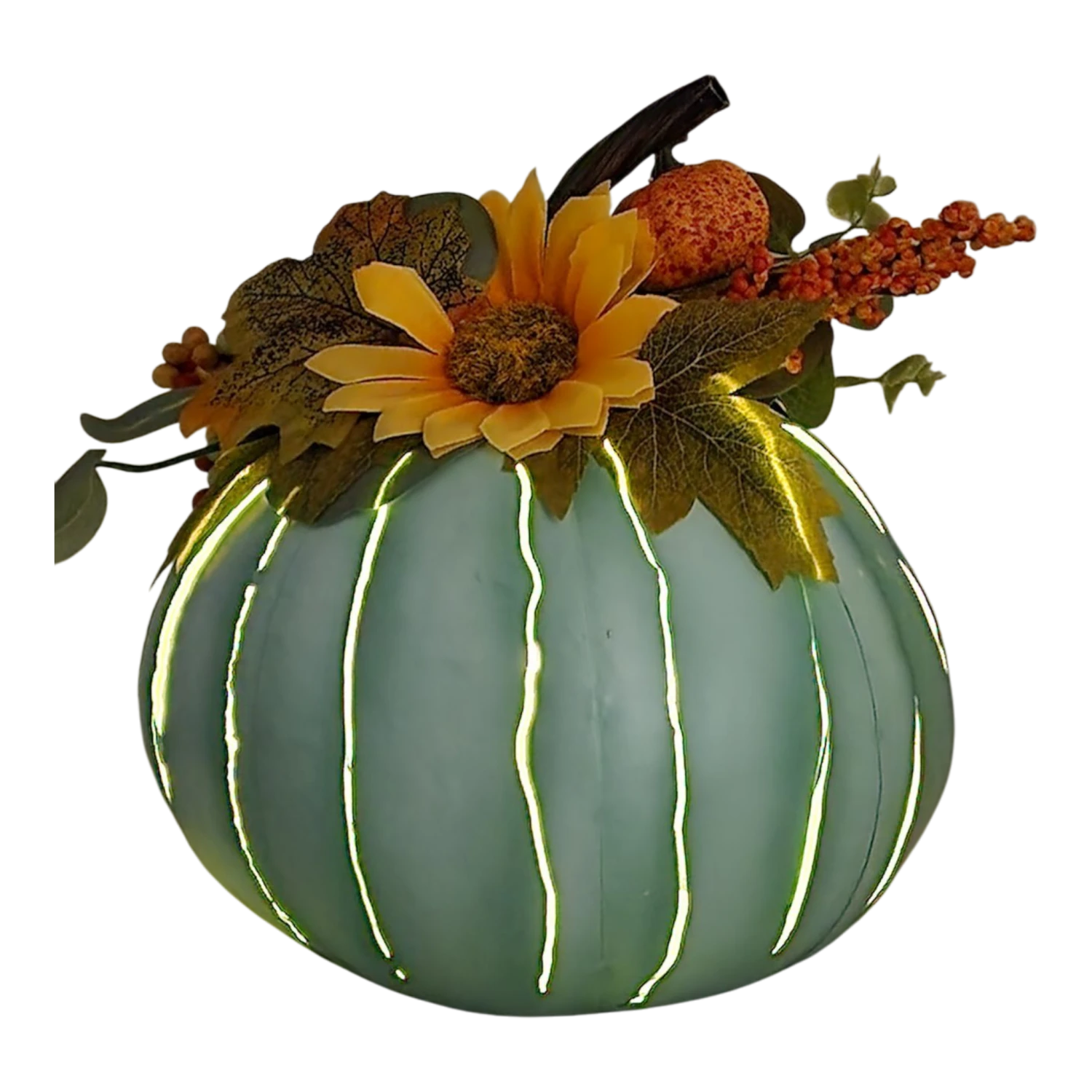 Next, the Serene Green LED Pumpkin offers a soft, tranquil tone that perfectly complements the colors of the season. This beautifully styled metal pumpkin, complete with lovely accents, lights up with a gentle flicker, enhancing the cozy atmosphere of your home as the days grow shorter.