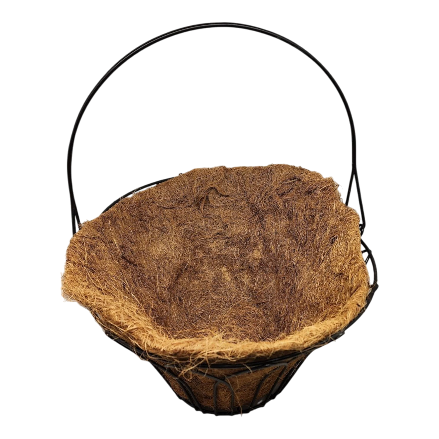 - 15-Inch Long Oval Black Metal Wire Handle Basket with Coco Mat Liner