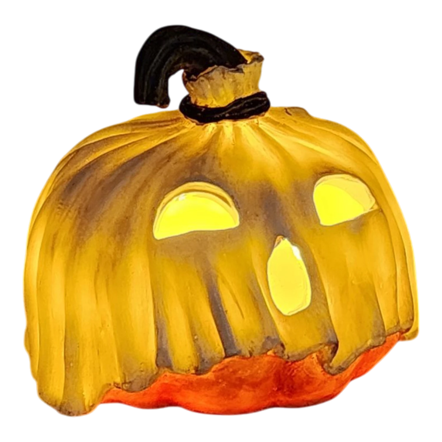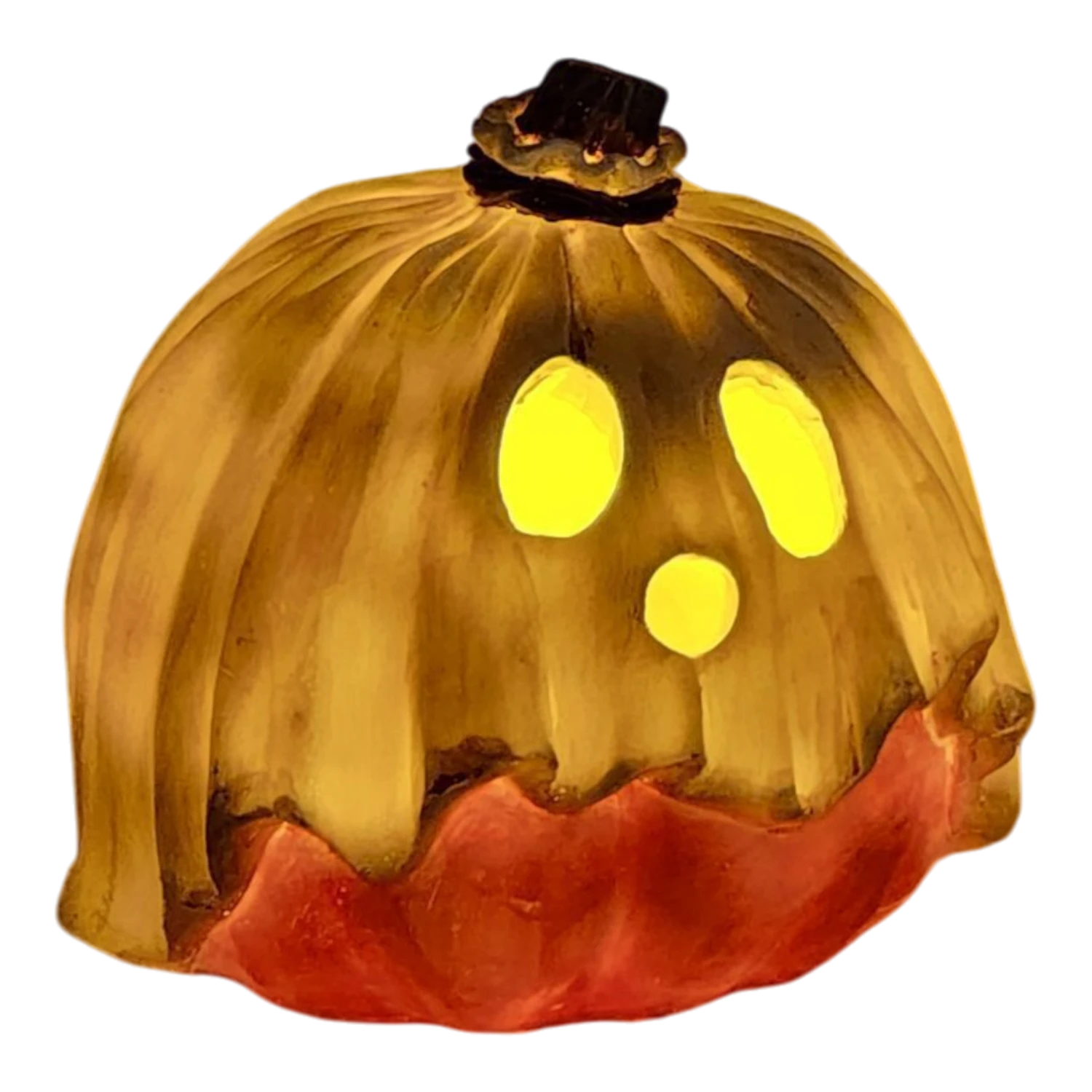 Phantom Phil – This 5.5-inch pumpkin has mysterious yet friendly features with a delightful grin. His soft glow and spectral drapery bring a hint of enchantment, making him a wonderful companion for nighttime Halloween festivities.