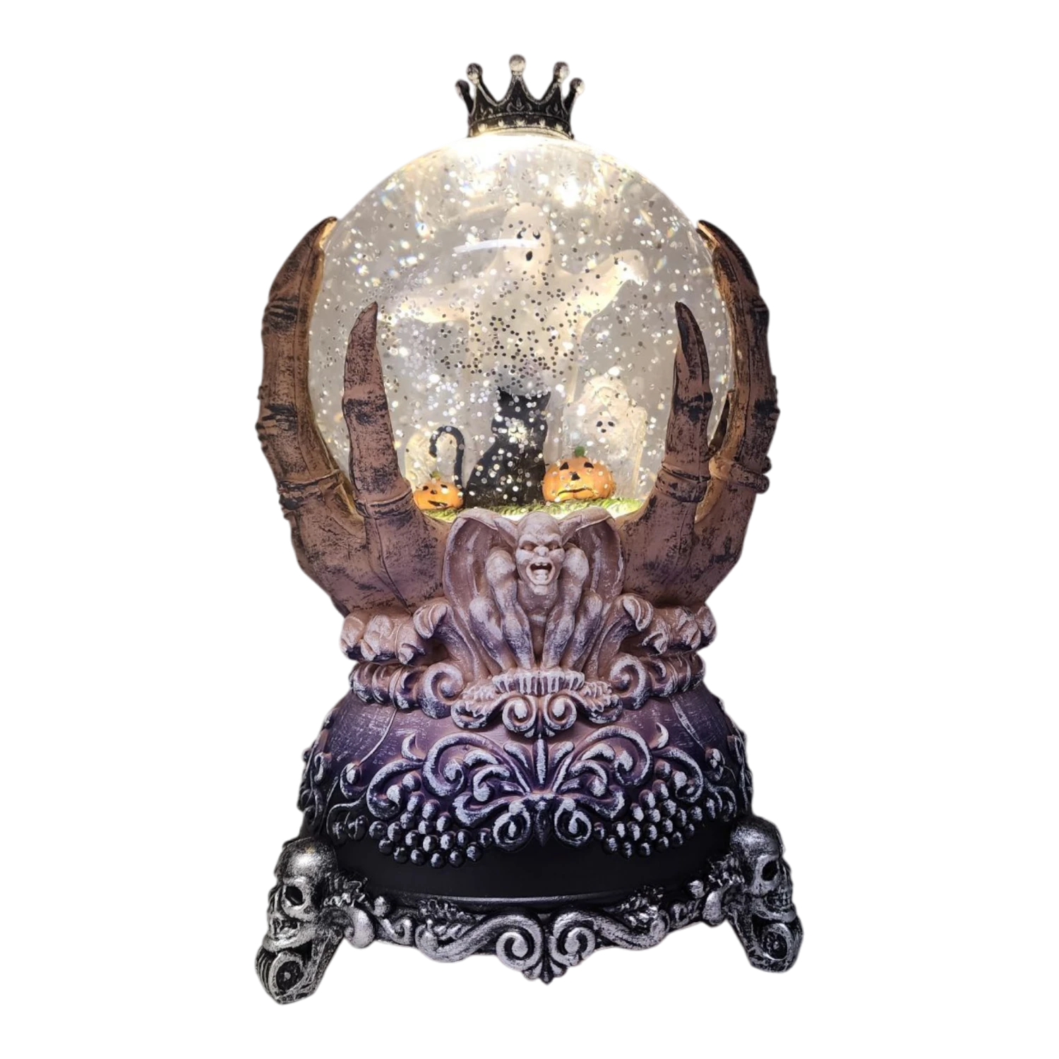 Perfect for Halloween or any gathering that celebrates the eerie and magical, this water globe adds an element of mystique to your decor. Imagine it glowing softly on a table as you host a spooky soirée, or displayed proudly on your mantle as part of your Halloween display. With its gothic design complete with intricately detailed hands and skull motifs, this globe not only acts as a stunning centerpiece but also sparks the imagination with every sparkling swirl. Bring a touch of the otherworldly into your home and let the enchantment unfold!