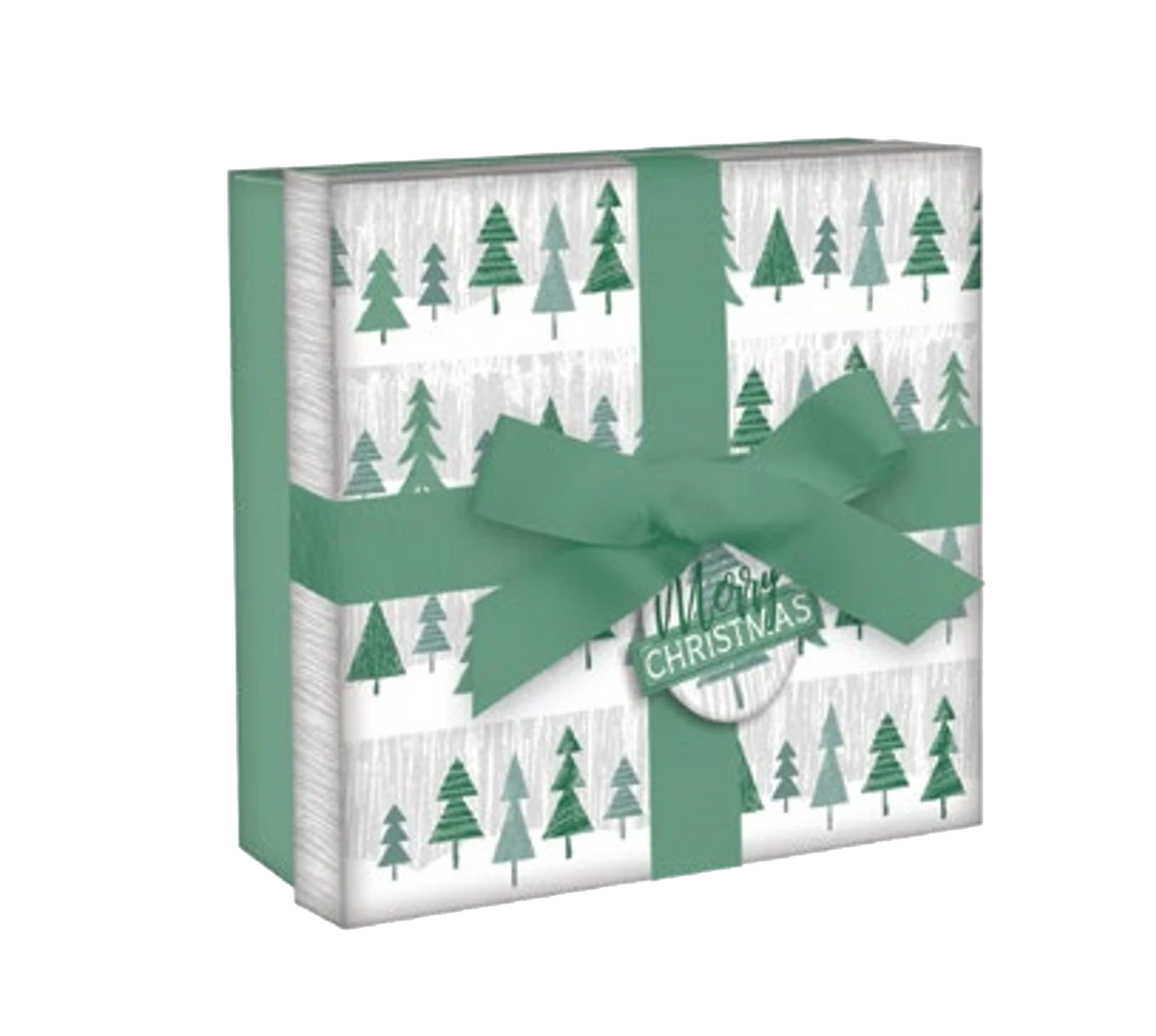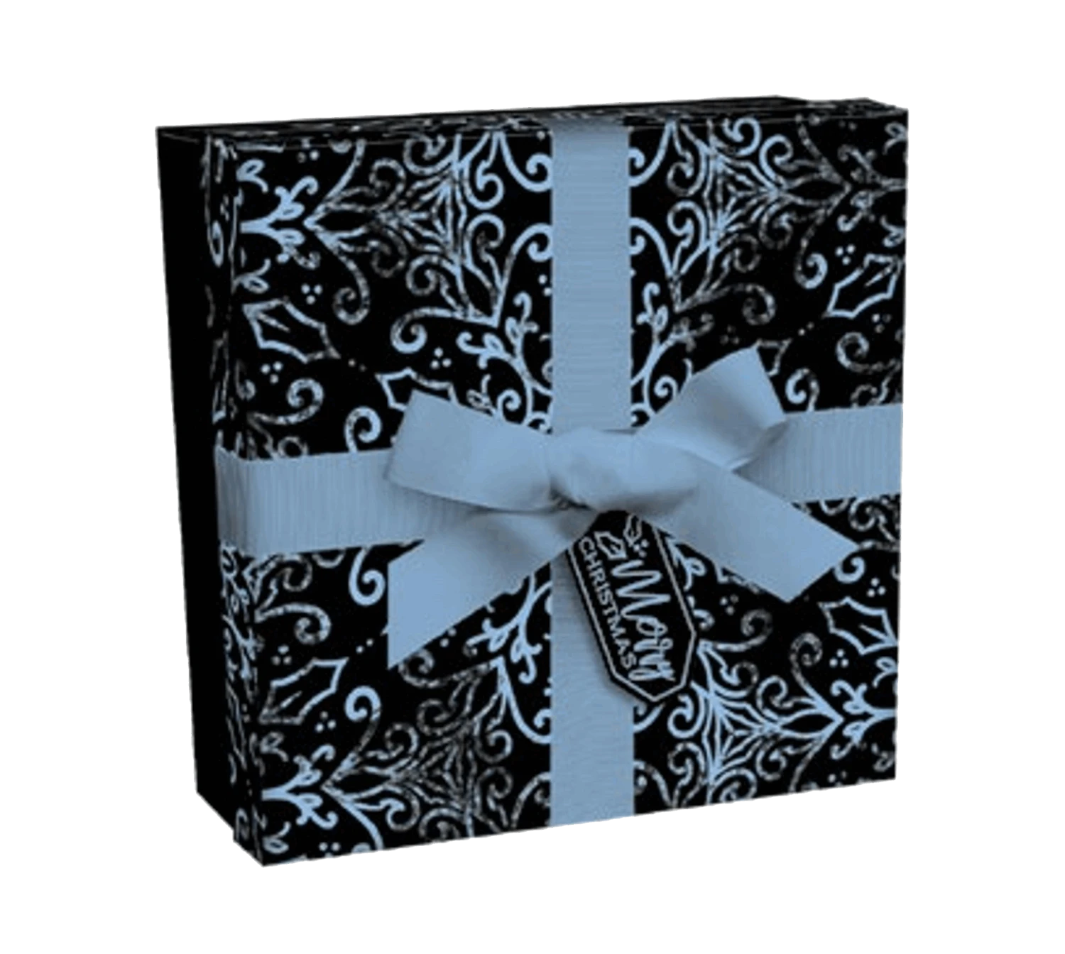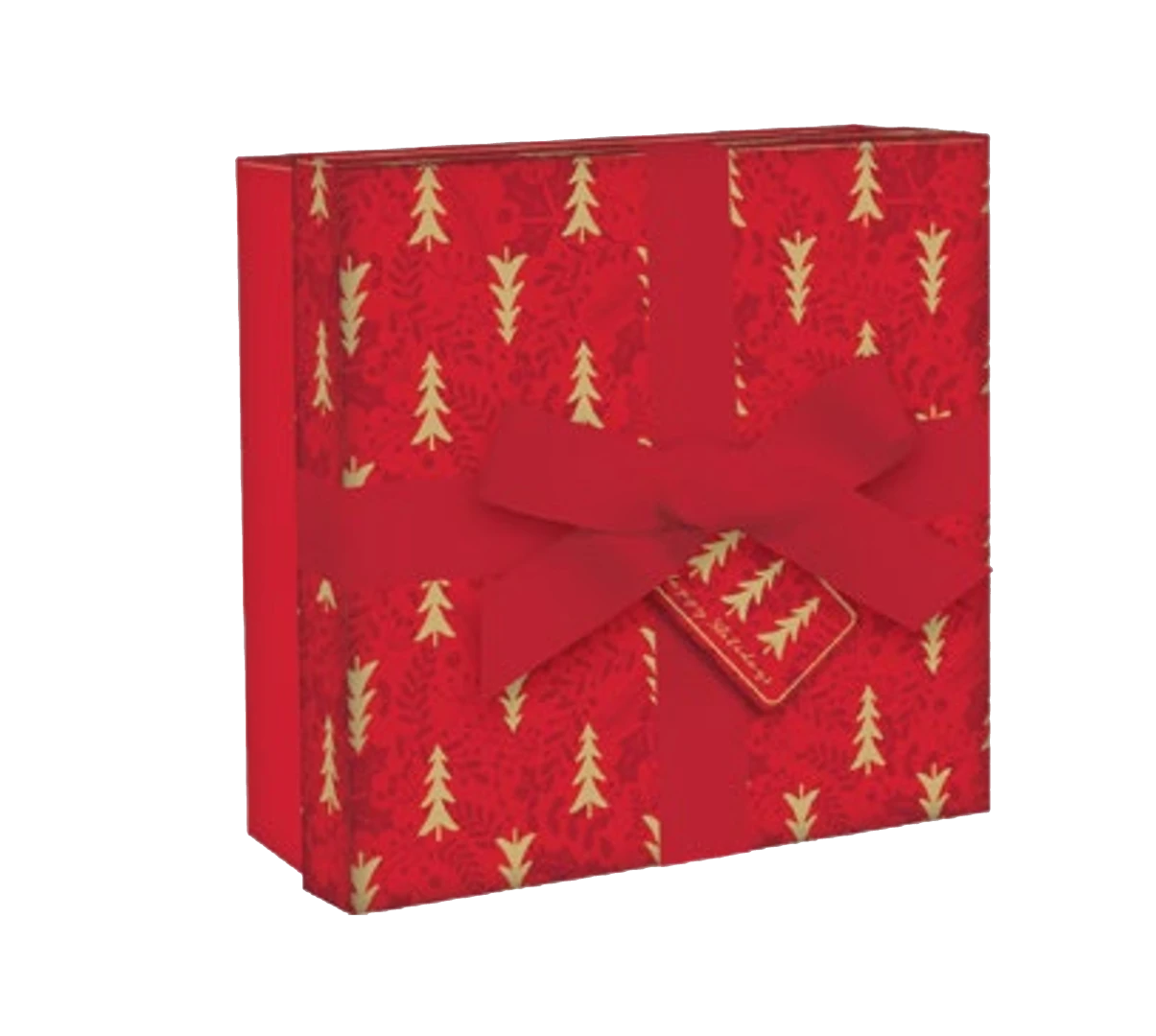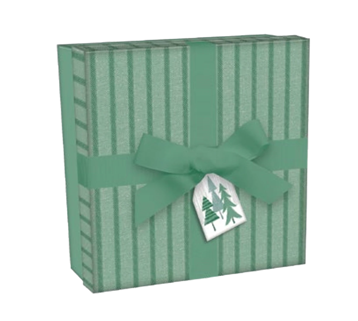 Each box includes a pretied fabric ribbon and a coordinating die-cut gift tag.