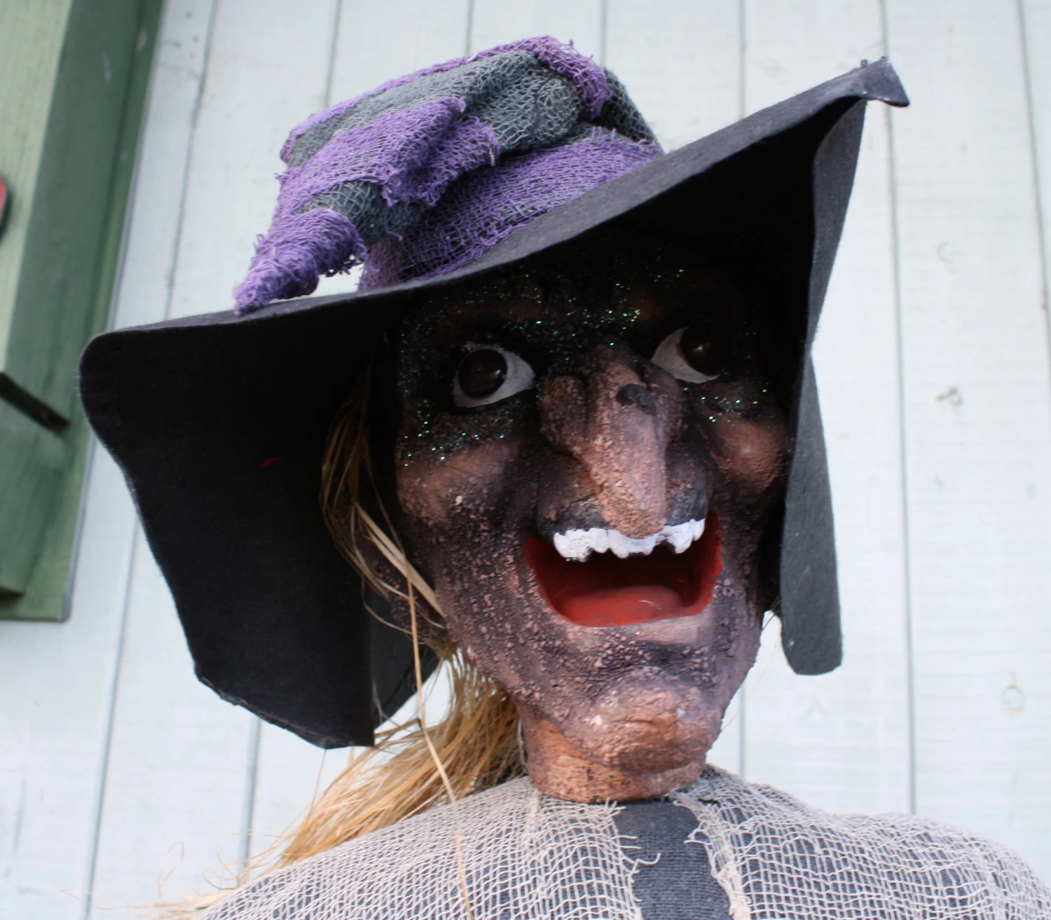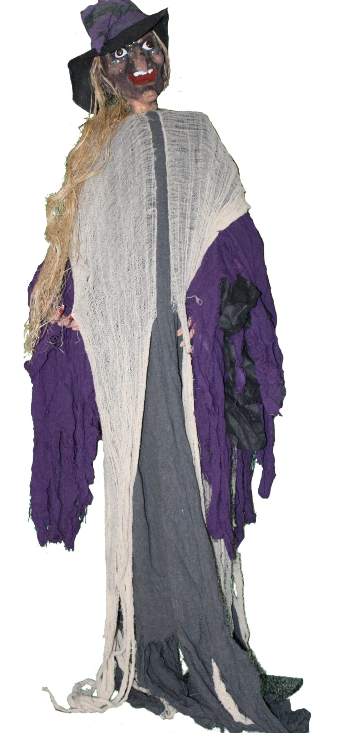 7 Foot tall Witch with an incredible amount of detail. The stand is a bit undersized, so you will need some weight on the base to keep her from tipping over (use use a Stake in the ground)