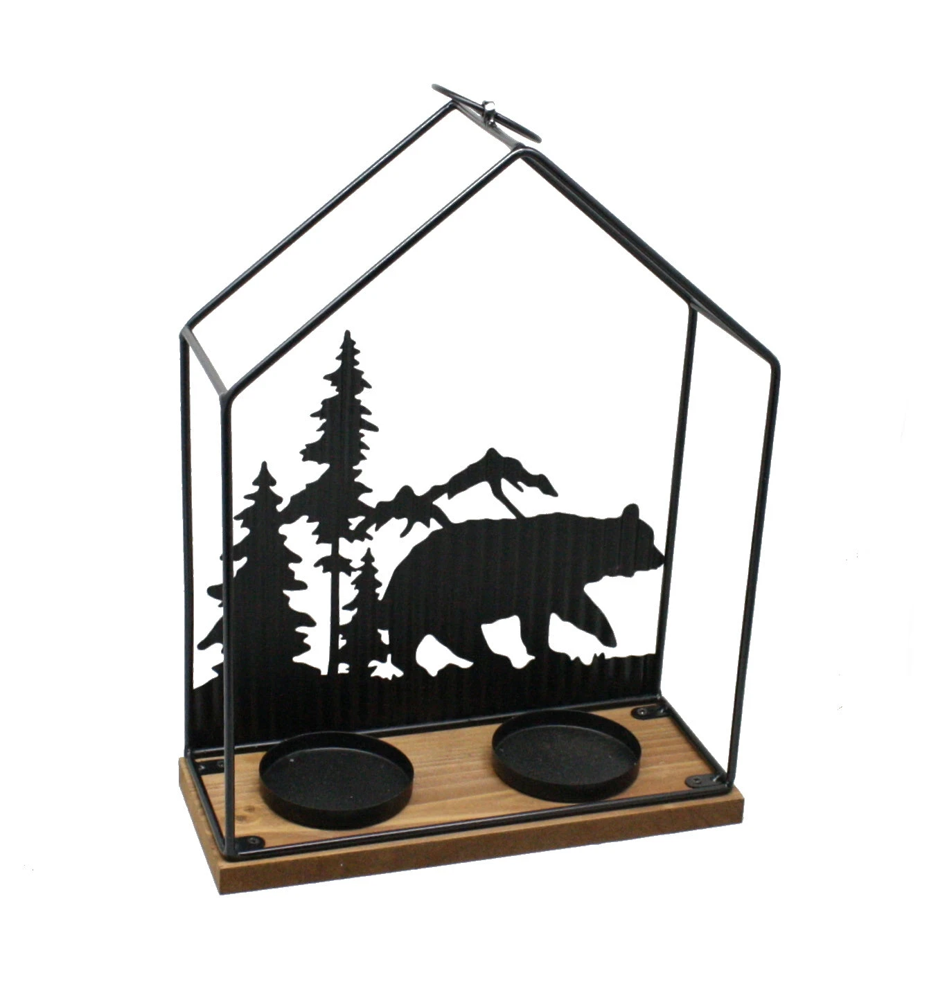 With a solid wooden base, metal frame, and corrugated metal silhouette cutout, this Lantern will be a centerpiece of your decor.
